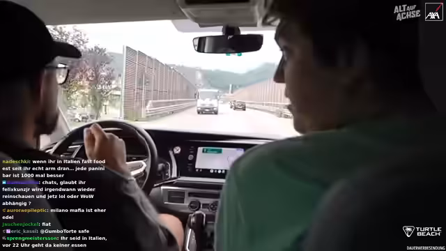 Auf dem Weg nach Italien werden Anekdoten ausgetauscht, darunter Geschichten über Instagram-Kontakte und frühere Erlebnisse. Es wird überlegt, Bärenfotos im Wald zu machen und eine Massage-Oma einzuladen. Giveaways, Zuschauer-Interaktionen und Steuerfragen werden thematisiert. Diskussionen über WoW, League of Legends und Kindheitserinnerungen kommen auf, bevor es um Streamer-Verhalten und Community-Reaktionen geht.