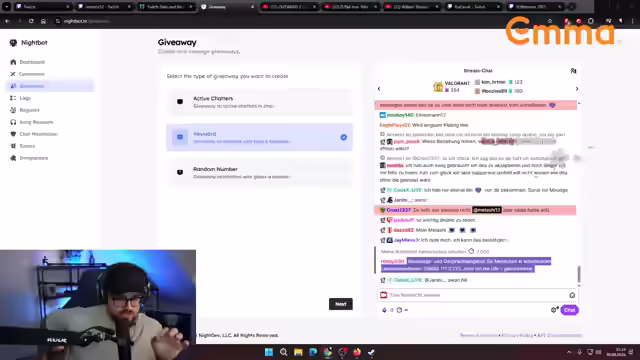 Interaktion mit dem Chat und Ankündigung eines Giveaways