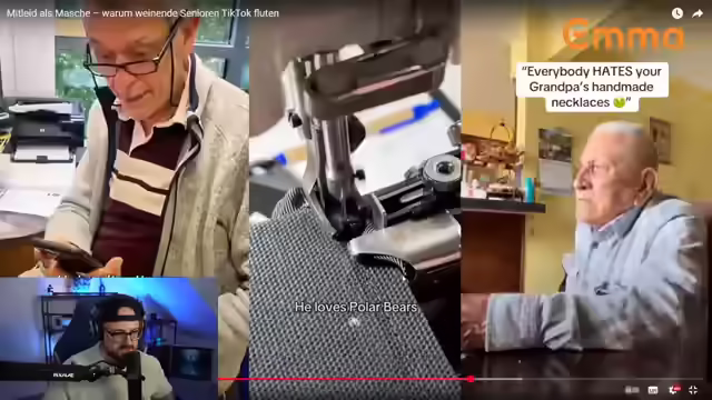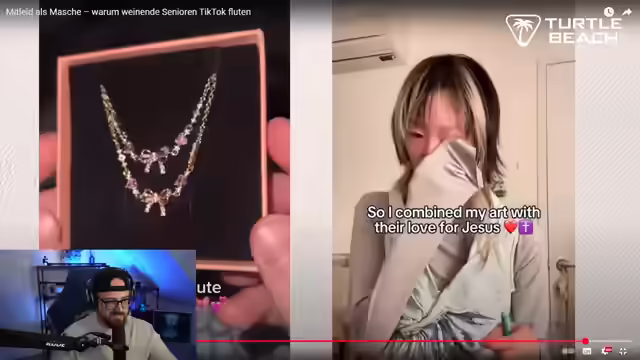 05:56:17Es wird ein neuer Scam auf TikTok, der Reverse-Enkeltrick, thematisiert, bei dem ältere Menschen weinend in die Kamera schauen und um Hilfe bitten, um beispielsweise die Tötung ihrer Tiere zu verhindern. Es wird kritisiert, dass Mitleid instrumentalisiert wird, um Produkte zu verkaufen oder Spenden zu generieren. Der Streamer betont, dass Mitleid grundsätzlich ein wichtiger sozialer Mechanismus ist, der jedoch auf Social Media oft für Aufmerksamkeit missbraucht wird. Er kritisiert, dass manche Menschen aufgrund von Mitleid unüberlegt handeln und vergleicht dies mit dem Klicken auf unseriöse Bannerwerbung. Des Weiteren wird die Absurdität thematisiert, dass sogar YouTubern mit Steuerschulden Geld gespendet wird. Es wird hervorgehoben, dass Mitleid oft ausgenutzt wird, um Klicks und Reichweite zu generieren, und dass es wichtig ist, die Mechanismen dahinter zu erkennen. Es wird auch die Frage aufgeworfen, ob man durch Weinen im Internet Geld verdienen darf und wie absurd dies teilweise eingesetzt wird. Der Streamer ruft dazu auf, ehrlich zu sein und zu hinterfragen, ob man aus Mitleid den Stream schaut.
