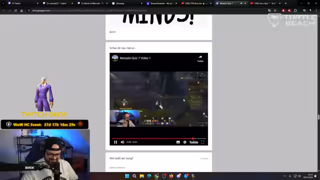 06:19:53Der Streamer stellt sich den ersten Quizfragen, die von der durchschnittlichen Herzfrequenz bis zur Anzahl der Tasten eines Klaviers reichen. Er gibt zu, dass er nach der dritten Klasse die Schule verlassen hat, was die Schwierigkeit der Fragen für ihn unterstreicht. Eine Frage zu Game of Thrones und den Drachen von Daenerys Targaryen wird mit Humor und einer persönlichen Abneigung gegenüber der Figur beantwortet. Ein Special Guest, Giacomo aus Taiwan, stellt eine Dota 2-Frage, die sich um die Bedeutung der Zahl 322 dreht, und sorgt für zusätzliche Unterhaltung. Es folgen weitere Fragen zu Love Island VIP, WoW-Raid-Bossen, Rappern und Planeten. Besonders hervorzuheben ist das WoW Geoguessr-Spiel, bei dem der Streamer seine Kenntnisse von Azeroth Classic unter Beweis stellen muss. Er meistert diese Herausforderung mit Bravour und erreicht in fünf Runden fast die maximale Punktzahl, was er als großen Erfolg feiert. Trotz einiger richtiger Antworten im Quiz blamiert sich der Streamer bei vielen Fragen und muss am Ende 48 Subgifts an die Community verteilen, die er auf 50 aufrundet, um seinen kognitiven Misserfolg zu kompensieren.