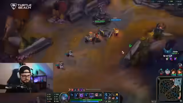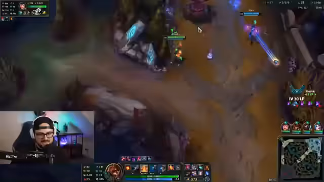 02:17:09Die Aufmerksamkeit verlagert sich komplett auf das laufende League of Legends-Spiel. Es wird intensiv über die Spielmechaniken und die Performance des gegnerischen Spielers gesprochen, insbesondere über den als sehr stark wahrgenommenen Vel'Koz. Der Streamer kommentiert seine eigenen Missgeschicke und die des Teams, wie zum Beispiel das Fehlen von Fähigkeiten und schlechte Positionierung. Er erwähnt auch technische Schwierigkeiten und einen drohenden Teamkill, während er versucht, das Spiel zu retten.