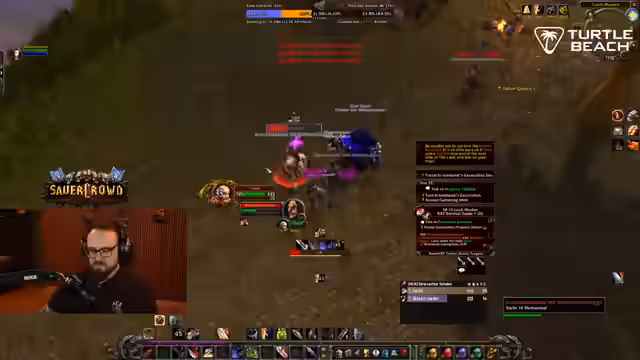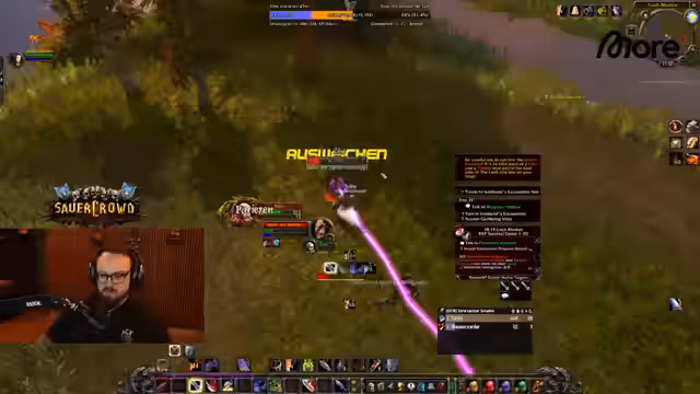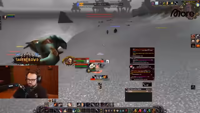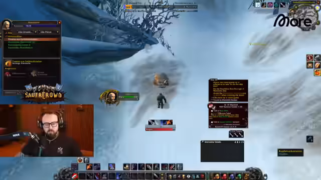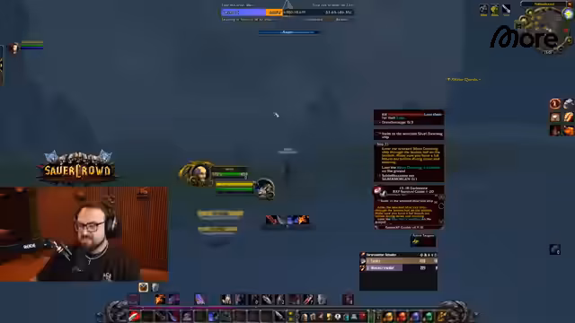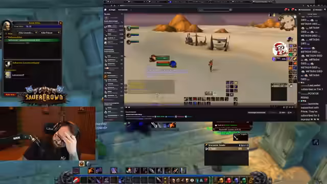 06:37:41Der Streamer erwähnt den schweren Verlust von Wilbo, der durch einen unglücklichen Zufall in eine für eine volle Gruppe bestimmte Höhle teleportiert und von einem Drachen zerfetzt wurde. Er erklärt detailliert die Mechanik der Höhle, die über eine Portalruine auf dem Boden zugänglich ist und Quest-Mobs für die Horde-Seite beinhaltet. Wilbo trat aus Versehen auf eine Runenstelle, die ihn direkt in den tötenden Kampf teleportierte. Die Level-60-Spieler müssen nun warten und auf Farm-Gear setzen, bis der Rest der Gruppe nachziehen kann. Dieser Vorfall wird emotional diskutiert, mit dem Streamer, der seine Sorge und Trauer über den Verlust ausdrückt, während er gleichzeitig versucht, das Gameplay fortzusetzen.