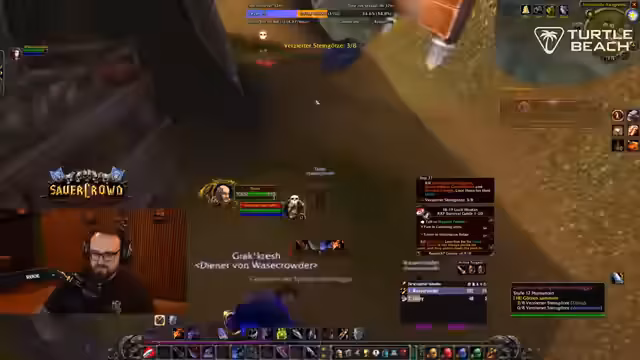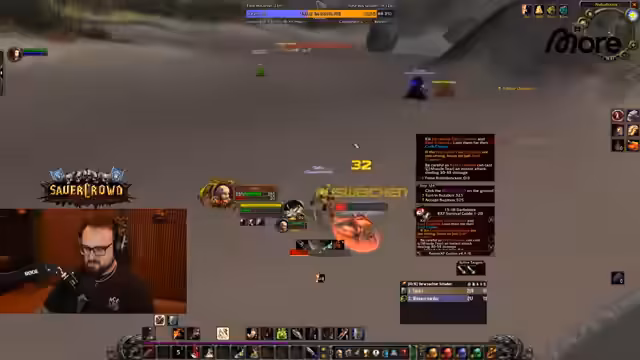 04:50:36Der Streamer spielt mit Vase und Felika gemeinsam in World of Warcraft. Sie führen Quests aus, kritisieren sich gegenseitig für fehlende Unterstützung im Kampf und diskutieren die Strategie für den Bojongo-Quest. Dabei wird klar, dass die Gruppe nicht nur kämpft, sondern auch die Dynamik zwischen den Spielern und die Bedeutung von Teamwork unterstrichen wird. Der Fokus liegt darauf, gemeinsam Ziele wie die Beseitigung von Mobs und das Voranschreiten in der Questline zu erreichen.