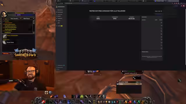 09:29:53Nach dem Verlust des Level-58-Charakters plant der Streamer die nahtlose Fortsetzung des Spiels. Das Team questet in Westfall und nutzt die 30 Minuten bis zum ZG-Buff, um Berufe auszubauen. Ein Treffen in Westfall wird koordiniert, während die Zeit bis zum Buff effizient für Handwerk genutzt wird. Ziel ist es, die Zeit bis zum nächsten Anlauf optimal zu nutzen und gleichzeitig den Buff zu sichern.