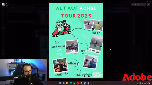 02:44:50Es wird ein Giveaway von 50 Euro Amazon-, Battle.net-, Steam- oder Lieferando-Guthaben unter allen Zuschauern im Chat angekündigt, die dem Kanal folgen. Der Streamer kündigt eine Partnerschaft mit Adobe an, bei der er und Frederike gemeinsam ein einstündiges Sponsoring für Adobe Photoshop durchführen werden. Während des Sponsorings soll ein Filmplakat für die Aldorff-Axe-Tour gestaltet werden. Der Streamer ruft die Zuschauer dazu auf, sich die Testversion von Photoshop herunterzuladen und mitzumachen. Zusätzlich zu dem Sponsoring kündigt der Streamer an, dass er und Frederike einen Teil ihrer Bezahlung mit der Community teilen werden, indem sie drei Giveaways veranstalten: eine Nintendo Switch 2 auf Frederiks Kanal, eine Playstation 5 und eine Xbox auf seinem eigenen Kanal. Die Zuschauer müssen lediglich beiden Kanälen folgen, um an den Giveaways teilzunehmen. Der Streamer lost die 50 Euro unter den teilnehmenden Followern aus.