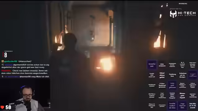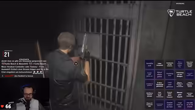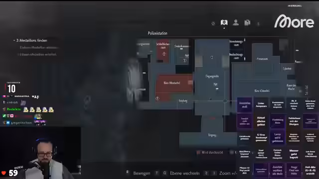02:40:12Als der Streamer tiefer in das Polizeireior vordringt, wird die Situation immer verzwickter. Er trifft auf Marvin, einen überlebenden Polizisten, und findet heraus, dass die Stadt von einem Virus heimgesucht wird. Der Streamer kämpft nicht nur mit den äußeren Bedrohungen, sondern auch mit seinem eigenen Orientierungssinn, der sich als eher mäßig erweist. Er verliert sich mehrmals in den Gängen des Gebäudes und muss sich Zurechtfinden. Gleichzeitig versucht er, die Bingo-Aktionen abzuarbeiten und die Giveaways zu unterstützen, was den Spielverlauf zusätzlich komplex gestaltet.