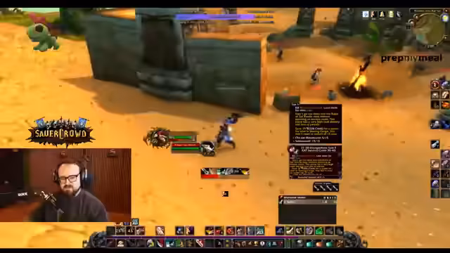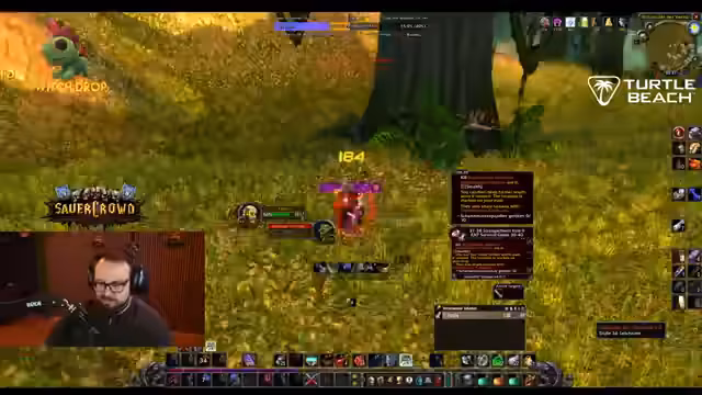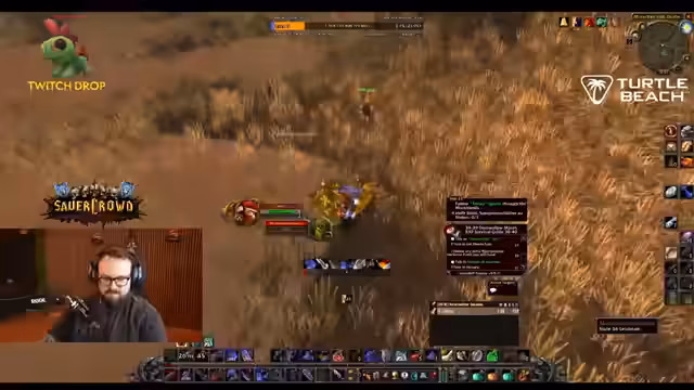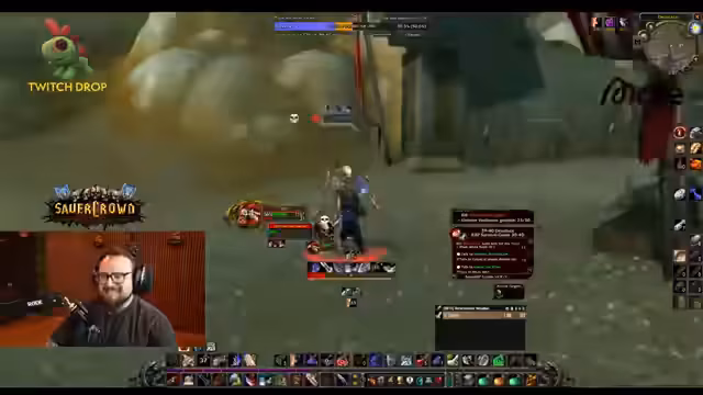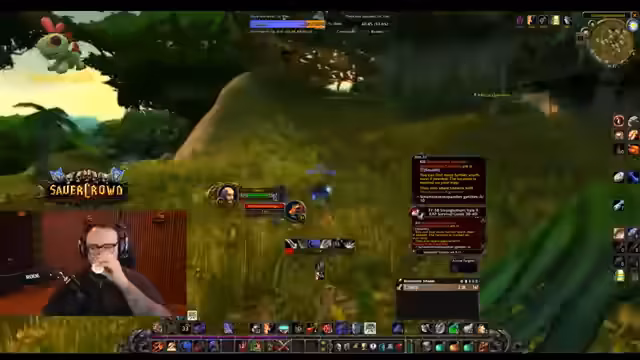 05:40:23Der Streamer geht in eine humorvolle und vulgäre Interaktion mit dem Chat, die sich um einen fiktiven 'Arschcall-Song' dreht, und erwähnt, dass er den Clip von Sunglitter, nicht seinen eigenen, bauen wird. Nach einem technischen Ausflug, um einen Clip zu überprüfen, setzt er das Gameplay fort, indem er Quests in Wetlands annimmt wie 'Take the boat to Theramore' und 'Accept the Orc Report'. Er betont, er vertraue komplett dem Guide und verkaufe Inventarüberflüssiges, um Platz zu schaffen.
