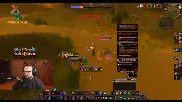 04:49:18Um die Quests effizienter zu gestalten und dem PvP-Stress zu entgehen, wendet der Streamer das Layer-System an. Er ruft im Chat nach anderen Spielern, die ihn auf einen anderen Layer umgelayern können, was jedoch fehlschlägt und für zusätzlichen Frust sorgt. Währenddessen kommt es zu PvP-Konfrontationen mit Spielern der Horde, die ihm Mobs und Items klauen, was ihn verärgert und zu beleidigenden Kommentaren veranlasst. Die Gegend wird als 'Pennergebiet' beschrieben, das ihn sehr unter Druck setzt.