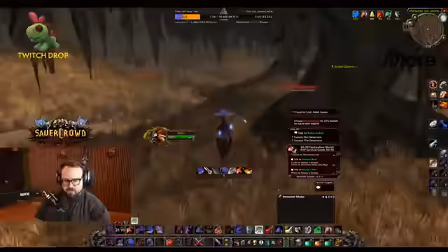 01:57:35Der Streamer beschreibt seinen Fortschritt bei der Schmiedequest, bei der er nur noch 22 Mitrile braucht, und betont, wie sehr er das Spiel als Skyrim-ähnlich empfindet. Er erwähnt seinen Handelsverkehr mit der Bank und seine Rolle als Damage-Dealer in der Gruppe, trotz seines geringen Levels. Die Dynamik in der Gruppe wird angesprochen, ein Mitglied, namens Dave, scheint beim Questen zu verlangsamen. Es gibt eine kurze Ablenkung durch ein WoW-Quiz, an dem der Streamer nicht teilnehmen konnte, und eine Reflexion über seine Rolle als Veteran gegenüber neuen Spielern (Vouches).