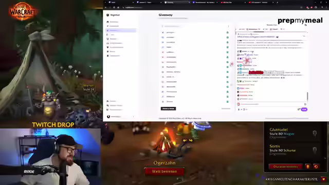 01:56:58Es wird ein Giveaway angekündigt, bei dem unter allen gefollowten Zuschauern im Chat 60 Tage kostenloses WoW-Spielen verlost werden. Die Teilnahme ist einfach: Followen und "!WoW" in den Chat eintippen. Die Ziehung findet um 11 Uhr statt. Anschließend entspinnt sich eine Diskussion über das Aussehen des Charakters im Spiel. Es wird der Wunsch geäußert, wie ein "Dildo" auszusehen, wobei der Streamer erklärt, dass er einen "Dildo-Mogger" verkörpern möchte. Es wird überlegt, wie man den Helm des Charakters anpassen kann, um den gewünschten Look zu erreichen. Der Streamer findet schließlich einen Look, der ihm gefällt und bezeichnet sich selbst als "Babaslayer". Abschließend werden Follower gegrüßt und ein neuer Sub wird für seine positive Einstellung zu WoW belohnt.