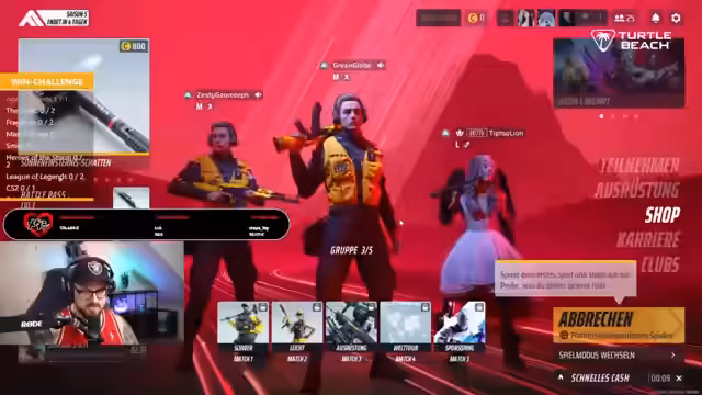 05:42:55Die Gruppe analysiert das laufende Spiel, diskutiert über Taktiken und äußert Frustration über Fehler. Es wird über die Spielweise einzelner Teammitglieder gesprochen, insbesondere über Stinky Cheese, dessen Leistung kritisiert wird. Die Spieler überlegen, wie sie ihre Strategie verbessern können, um das Spiel zu gewinnen. Es wird auch über die Wahl der Maps diskutiert, wobei einige Basalt bevorzugen würden. Die Gruppe plant, nach dem Spiel Smite und Frackpunk zu spielen, wobei League of Legends erst später auf dem Programm steht. Die Spieler analysieren die Spielweise der Gegner und versuchen, deren Taktik zu durchschauen. Es wird auch über die Skins und Messer im Spiel gesprochen, wobei ein besonderes Interesse an einem seltenen Skin besteht. Die Gruppe startet ein Counter-Strike Match und analysiert die Spielweise sowie die Map-Kenntnisse der einzelnen Spieler. Es wird festgestellt, dass einige Spieler noch Schwierigkeiten haben, sich auf der Map zurechtzufinden. Es wird auch über die Möglichkeit diskutiert, den Random-Spieler aus dem Team zu werfen, um das Spiel zu erleichtern.