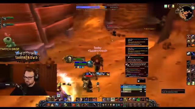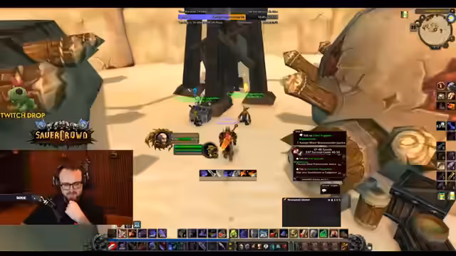 07:41:34Nachdem sich die komplette Gruppe formiert und der Streamer sich vorbereitet hat, geht es los in den Blackrock Depths. Der Eintritt findet im Schwarzen Berg statt. Bevor die Gruppe den Dungeon betritt, gibt es kurze technische Probleme mit dem Portieren und eine kleine Verzögerung, da alle Spieler synchron teleportiert werden müssen. Während des Eintritts wird eine Quest für Gazrilla erwähnt, die ein Spieler mitgenommen hat, was die Gruppe motiviert und den Run zusätzlich bereichert. Die Atmosphäre ist angespannt, aber die Gruppe ist bereit für den Kampf.