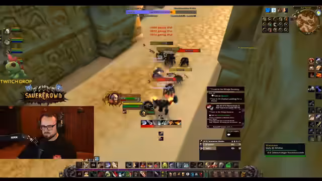 08:01:17Die Gruppe erreicht das Ende des Gräberteils und steht vor dem Endboss, dem Schattenpriester Malichi. Der Streamer erklärt die Mechaniken des Bosses, insbesondere seine Fähigkeit 'Buffy Buffy' (vermutlich 'Vampirumarmung'), die ihm Leben entzieht. Die Gruppe bereitet sich vor, indem alle wichtigen Questitems und Gegenstände wie die Schrifttafel gesammelt werden. Es kommt zu einem unerwarteten und chaotischen Auftauchen der Mobs, was den Kampf Beginn erschwert und die Spannung im Raid erhöht. Der Streamer betont die Wichtigkeit des vorsichtigen Vorgehens, um nicht zu überfordert zu werden.