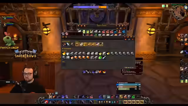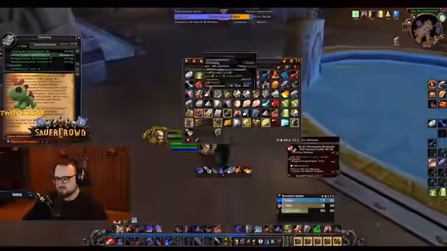 00:17:43Der Streamer schildert eine Anekdote über seinen beschwerlichen Weg zum Büro, der von Schnee, glatten Straßen und Unfahrbereitschaft geprägt war. Anschließend wechselt er das Thema, um einen loot-getriebenen Call für den Gildenmitglied Zerberster abzuwickeln, der im Spiel seltene Items erhalten hat. Kurz darauf gerät er in eine technische Verwirrung, weil er nicht die korrekte UI-Konfiguration für seine Zauberleiste findet.