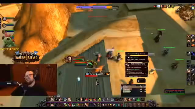 02:56:46Das Hauptziel bleibt das Erreichen von Level 50, wobei der Streamer einen Vorteil durch abgeschlossene Quests hat und so Konfrontationen mit stärkeren Gegnern vermeiden kann. Nach dem Besuch bei einem Schmied in Sturmwind zur Abholung von Ausrüstung soll es nach Searing Gorge gehen, um dort Quests abzuschließen und anschließend nach Tanaris zu reisen. Zur Vorbereitung auf den Kampf werden Rüstungen aufgerüstet, dicke Heiltränke verwendet und wichtige Talente wie Sweeping Strikes aktiviert, um die Effektivität im Grind zu maximieren.