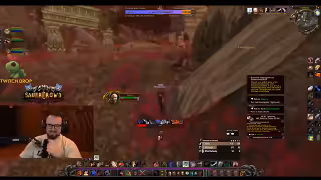 06:38:39Die Gruppe fliegt in die Teufelswelt, um eine neue Questreihe zu beginnen. Es müssen Toxin-Schreckentröpfchen gesammelt werden, um die Verteufelung von Knarzer-Klauen zu verhindern. Die Gruppendynamik bleibt locker, während der Streamer immer wieder interagiert, bei der Loot-Verteilung assistiert und humorvoll mit den Zuschauern interagiert.