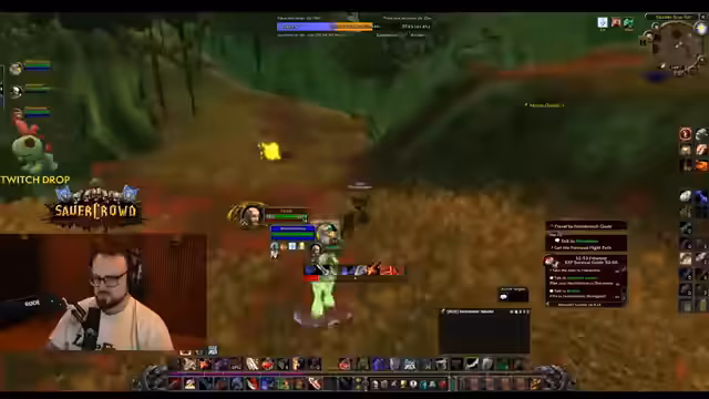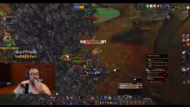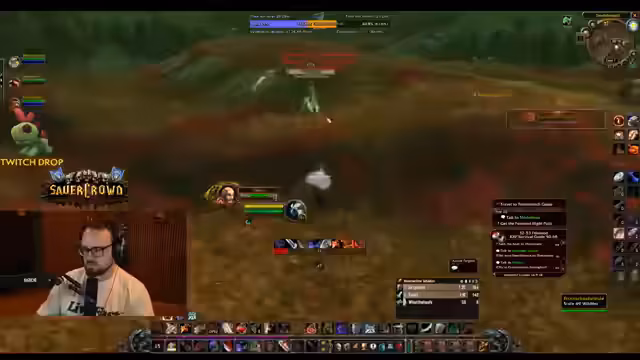 01:53:21Die Gruppe jagt Mobs im Teufelswald, um spezielle Gegenstände wie Splitter für einen World Buff und Essenz der Erde zu farmen. Ein großes Problem ist das sogenannte 'Layer-Roping': Der Streamer sucht verzweifelt nach einem bestimmten Mob, weiß aber nicht, auf welchem von neun möglichen Layern dieser sich befindet. Dieses Problem führt zu Frustration und verschwendet wertvolle Zeit, da das manuelle Wechseln der Layer nicht zuverlässig ist.