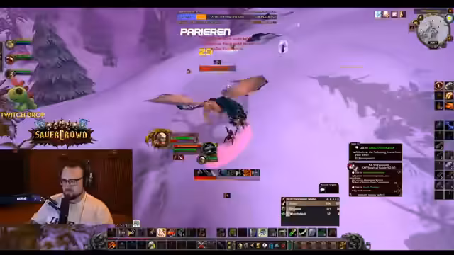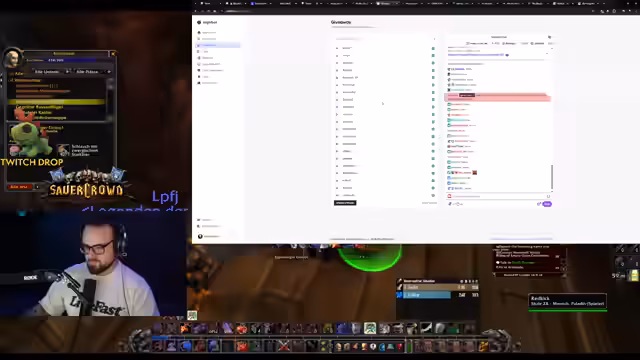 08:29:14Die Gruppe hat das Level 59 erreicht und den Plan gefasst, morgen BRD zu machen und die Storyline abzuschließen. Während des Raids muss sich Dirty Devil jedoch aufgrund eines privaten Notfalls kurzfristig ausloggen. Dies löst im Stream und Chat Sorgen und Anteilnahme aus, und die Gruppe hofft, dass es ihm gut geht. Simon muss sich kurz abmelden, was die Gruppendynamik kurzzeitig unterbricht, aber der Farming-Prozess geht weiter.