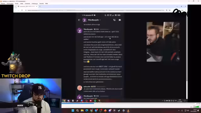 01:45:21Während der Wiedergabe des Videos treten technische Probleme auf, da der Sound doppelt zu hören ist. Es stellt sich heraus, dass Han, eine der involvierten Personen, seinen Stream im Hintergrund offen hatte. Der Streamer ist überrascht und frustriert über die Situation, da er eigentlich nicht streamen wollte und gerade erst vom Sport kam. Er erklärt, dass sein Datenvolumen aufgebraucht war und er erst kurz vor dem Stream von den Ereignissen erfahren hat. Es wird ein VLC-Player heruntergeladen, um die Soundprobleme zu beheben. Die ersten Reaktionen im Chat und des Streamers selbst zeigen eine klare Positionierung gegen Han und die Freude über dessen "Auseinandernehmen".