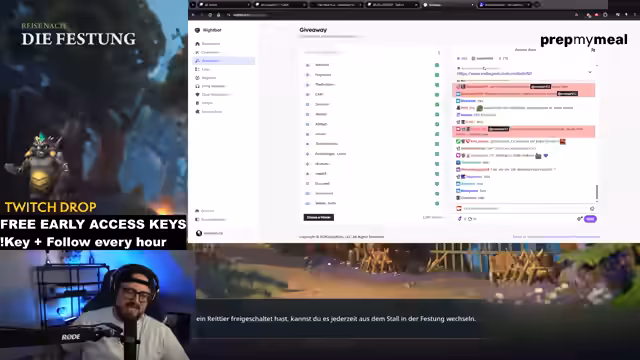 04:03:27Der Streamer führt das angekündigte Giveaway für Fellowship durch. Er wiederholt die Teilnahmebedingungen: ein Follow im Kanal und das Eintragen des Keywords 'Ausrufezeichen Key' im Chat. Die Gewinne sind entweder Early-Access-Keys für das Spiel oder 25-Euro-Guthaben für diverse Plattformen, wobei die Gewinner ihren Preis frei wählen können. Die Ziehungen finden stündlich statt. Parallel gibt es technische Probleme mit dem Start des Spiels Fellowship, was den Stream etwas ausbremst, und es werden drohende Probleme mit dem Streaming-Standort erwähnt.