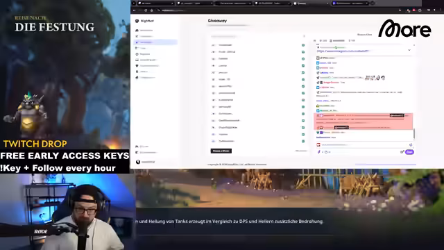 03:55:42Während der hitzigen Diskussion wechselt der Fokus auf den Release des Spiels 'Fellowship'. Der Streamer kündigt an, das Spiel zu kaufen, obwohl er den Preis von 22,05 Euro für ein Early-Access-Spiel als sehr hoch empfindet. Er beschließt, vier Gutscheine im Wert von 25 Euro zu verlosen, die für Steam, Amazon, Battle.net oder Lieferando eingelöst werden können. Um am Giveaway teilzunehmen, müssen die Zuschauer dem Kanal folgen und 'Ausrufezeichen Key' in den Chat eingeben. Die Ziehungen sind für 19:00 Uhr, 20:00 Uhr und 20:45 Uhr geplant. Der Streamer beschreibt 'Fellowship' als einen Dungeon Crawler, der WoW sehr ähnlich ist und sich ausschließlich auf M+ (Mythic Plus) konzentriert, ohne Quests oder Leveln. Er betont die Schwierigkeit des Spiels und überlegt, ob er eine der neuen Klassen ausprobieren soll.