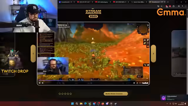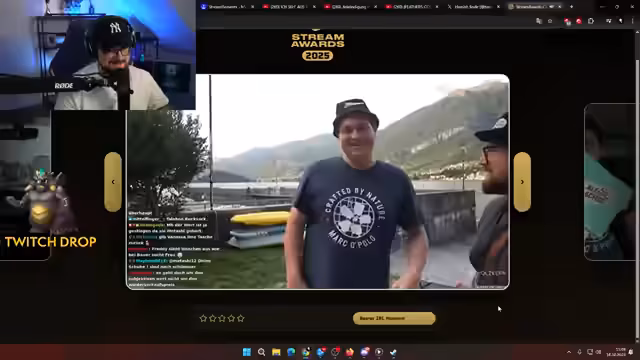00:52:33Der Streamer kündigt an, dass er und seine Community sich einen Teil des Satter Hugo Videos ansehen werden, in dem er vorkommt. Er äußert sich kritisch zu den ausgewählten Clips, die ihn in ungünstigen Spielsituationen zeigen, und bittet seine Zuschauer, ihm bessere Clips zuzusenden, die seine Fähigkeiten in Battlefield besser widerspiegeln. Anschließend widmet er sich den Stream Awards 2025 und dem neuen Feature 'Clipfeed', das es ihm ermöglicht, die von seiner Community eingereichten Clips anzusehen und zu bewerten. Er fordert die Zuschauer auf, bis Samstagabend um 19 Uhr weitere Clips einzusenden, insbesondere wenn wichtige Momente fehlen, um seine Chancen bei den Awards zu verbessern.