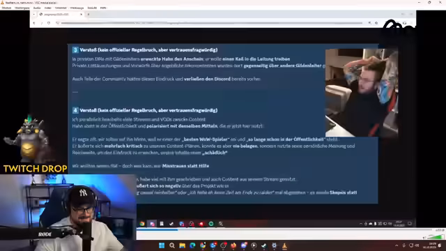 02:48:14Der Streamer äußert tiefe Enttäuschung über Nick und '90er Baujahr', insbesondere über Lügen und respektloses Verhalten in privaten Gesprächen. Er betont, dass er seit acht Jahren authentisch ist und seinen Erfolg seiner echten Persönlichkeit verdankt. Er lehnt es ab, mit Personen zusammenzuarbeiten, die sich als 'Schwanz' erweisen, selbst wenn sie gute Pläne haben. Ein Screenshot wird gezeigt, in dem '90er Baujahr' angeblich sagte, er würde 'auf Feathers scheißen', falls er zum Metashi-Event eingeladen würde. Der Streamer ist schockiert über die Aussage eines Gildenmeisters, der seine eigene Gilde für persönliche Reichweite opfern würde, und kritisiert die respektlose Haltung, Gespräche als unwichtig abzutun.