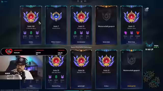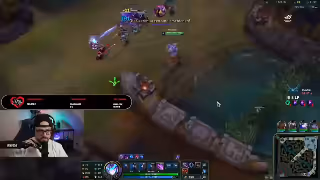 02:22:22Der Streamer äußert den Wunsch, im Rang aufzusteigen, idealerweise zu Smaragd, ist aber unsicher, ob dies gelingt. Plötzlich treten technische Probleme auf: Das Spiel lädt nicht und scheint abzustürzen. Ein Zuschauer spendet erneut für krebskranke Kinder, was der Streamer dankbar erwähnt. Er bezeichnet seinen PC als "schimmlig". Nach einem Neustart des Spiels gibt es Verbindungsprobleme. Schließlich gelingt es ihm, sich wieder zu verbinden und ins Spiel zu gelangen. Er spielt Malzahar in der Mitte gegen Darius auf der Top-Lane. Der Streamer äußert Bedenken hinsichtlich des gegnerischen Shaco, der den Namen "Schakoslayer" trägt und möglicherweise sehr erfahren ist. Er analysiert die Aufstellung der Teams und äußert die Befürchtung, dass die gegnerische Lissandra stark sein könnte. Das erste Blut geht an die Botlane des Gegners. Der Streamer erkennt, dass Lissandra eine starke Gegnerin ist und er dies vergessen hatte. Er betont die Notwendigkeit, sicher zu spielen, da er bis zum Erreichen seiner Ultimativen Fähigkeit kein großes Tötungspotenzial hat. Trotzdem gelingt es ihm, in einem Kampf erfolgreich zu sein und die Lissandra zu besiegen, was er enthusiastisch feiert.
