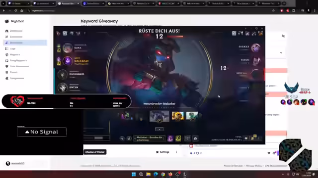 06:20:57Nach einer intensiven Spielrunde, die mit einer Niederlage endet, betont der Streamer die Bedeutung von Zusammenhalt und gibt bekannt, dass er ein Giveaway unter allen Zuschauern veranstalten wird, die den Kanal abonniert haben und den entsprechenden Befehl im Chat eingegeben haben. Er kündigt an, dass das nächste Spiel das letzte sein wird und schaltet die Kamera erst wieder ein, wenn das Spiel beginnt. Der Streamer interagiert mit den Zuschauern, bedankt sich für neue Abonnements und beantwortet Fragen im Chat. Er spricht über vergangene Essgewohnheiten und die Möglichkeit, mit einem Sieg die Verluste auszugleichen. Während der Championauswahl blendet er das Giveaway ein und kommentiert die gegnerischen Spieler. Er drückt seine Wertschätzung für die Zuschauer aus, die seine Kamera sehen wollen, und kündigt an, nach der Runde eine Pause einzulegen. Es wird gegen Yasuo Sangeki gespielt, wobei der Streamer um Hilfe bittet. Erwähnt werden Streams mit No Way For You, Sir, in Minecraft.