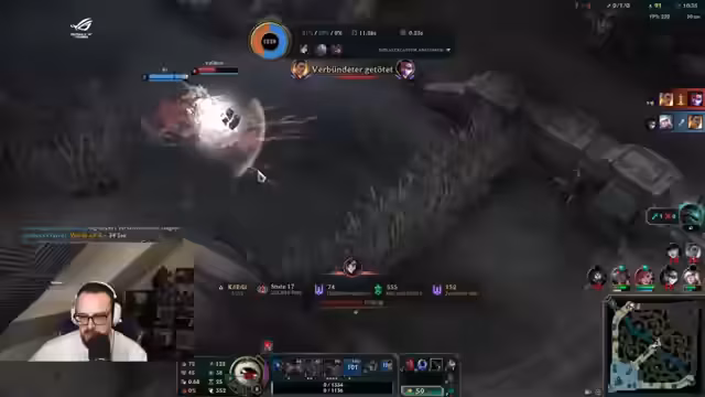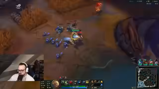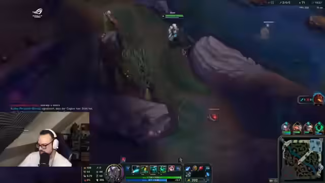 06:15:22Während des Streams wird ein intensives League of Legends-Spiel gespielt und kommentiert. Der Streamer analysiert das Spielgeschehen sehr detailliert und emotional, gibt Einblicke in seine strategischen Überlegungen, Item-Builds und nimmt zu den Leistungen seines Teams und der Gegner Stellung. Er äußert Frustration über die eigene Leistung, insbesondere im Top-Lane, aber auch über Entscheidungen des Teams, während er zugleich versucht, trotz schwieriger Situationen motiviert zu bleiben und das Spiel noch zu gewinnen.