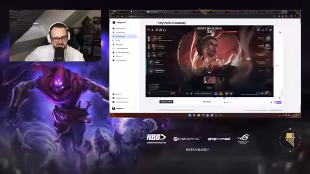 00:41:43Nach einer persönlichen Einleitung der Unterstützer geht der Streamer zur Werbung über. Er stellt die Sponsoren PrepMyMeal, Notebooksbilliger.de und Memory PC vor, wobei er besonders die Jahrespartnerschaft mit Memory PC hervorhebt. Für die Saison sponsert Memory PC ein Giveaway, bestehend aus einer Be Quiet PC-Hülle und einer Wasserkühlung. Um den Stream weiter aufzupeppen, kündigt der Streamer ein Giveaway an: Für jeden gewonnenen Game gibt es 25 Euro Guthaben, und bei zwei verlorenen Games wird ein 50-Euro-Giveaway ausgelost.