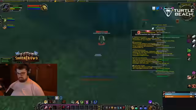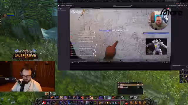 00:13:49Der Fokus verschiebt sich auf das Gameplay von World of Warcraft Classic. Der Streamer beschäftigt sich intensiv mit dem Quest-Grind, speziell der Jagd nach dem 'Mittleren Bike', was ihn frustiert. Gleichzeitig fungiert er als technischer Support für den Chat, der bei Problemen mit Add-Ons wie CurseForge oder Overwolf um Rat fragt. Diese beiden parallelen Themen dominieren diesen Abschnitt des Streams.