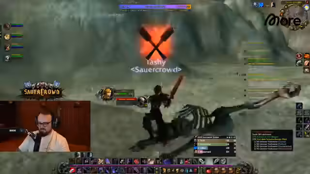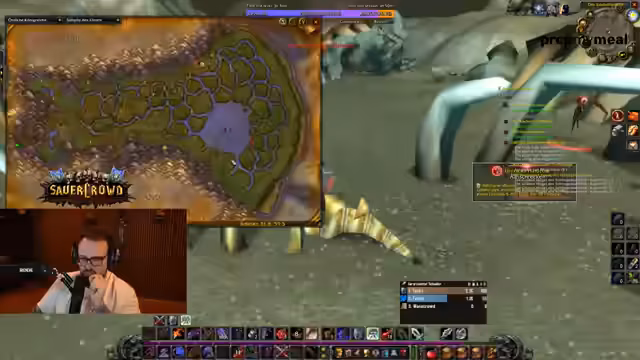 15:16:06Aufgrund eines Vorschlags aus dem Chat wird der Streaming-Klassiker Afro Samurai erwähnt und für einen zukünftigen Nachschlagevorschlag in Betracht gezogen. Die Unterhaltung wendet sich dann wieder dem Spiel World of Warcraft zu. Der Streamer und seine Gruppe beziehen eine defensive Position in einer gefährlichen Zone, um sich sicher zurückzuziehen. Es kommt zu technischen Problemen wie Lag und Disconnects. Trotzdem verlieren mehrere Gruppenmitglieder, einschließlich des Streamers, den Kampf, was zu Frustration und einer Analyse der taktischen Fehler führt.