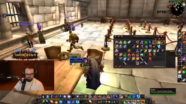 17:24:31Der Stream beschäftigt sich intensiv mit den Vorbereitungen für den Gnomeregan-Dungeon. Es werden die benötigten Quests, wie die elf Stück namens 'Regan', besprochen und gesammelt. Der Streamer prüft den Gruppenstatus, stellt sicher, dass alle Teilnehmer alle notwendigen Questitems wie Techbots Speicherkern, Sammelfiole und Lochkarte besitzen, und plant den genauen Ablauf des Runs. Dabei werden auch Fragen zu den Quests und deren Teilbarkeit im Chat geklärt.