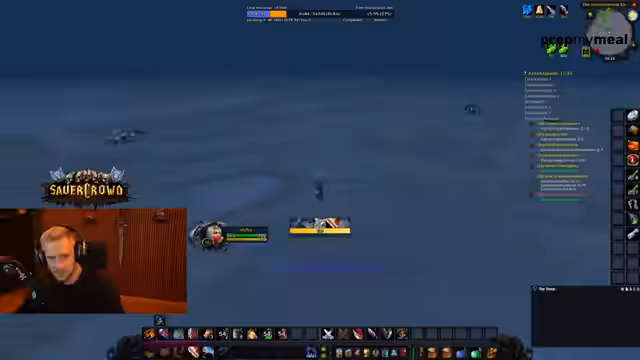 14:11:57Während eines Quests in Gnomeregan ereignet sich ein tragischer Unfall, bei dem ein Mitspieler, Ronja, versehentlich in einen Absturz stürzt und stirbt. Streamer ist betroffen und traurig über den Vorfall. Die Mitspielen reagieren unterstützend und versprechen, Ronja sofort wieder hochzuziehen, um ihr weiterzuhelfen und die negative Stimmung zu mildern.