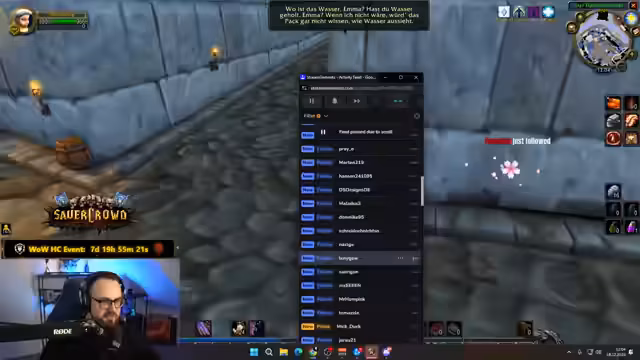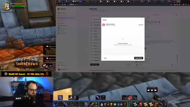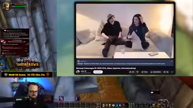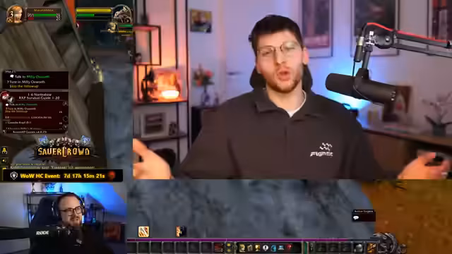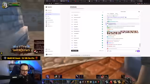 04:48:02Es wird die bevorstehende Teilnahme an einem World of Warcraft-Quiz-Event mit anderen Streamern wie Hand of Blood und Sunglitters angekündigt. Technische Vorbereitungen, darunter das Einrichten der Kamera und die Integration von Browser-Quellen, werden diskutiert. Chris äußert Bedenken zu möglichen Retail- oder Lore-Fragen, da er nur Classic-Erfahrung hat. Parallel läuft ein Giveaway mit Turtle-Beach-Hardware, bei dem Follower durch den Befehl !TB teilnehmen können.