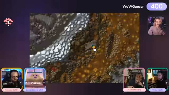 07:12:58Ein Map-Bewege-Quiz erfordert von den Teilnehmern, den genauen Standort einer unterirdischen Region im Gebirgspass der Totenwinde zu finden. Nach anfänglicher Verwirrung und wilden Mutmaßungen, einschließlich eines falschen Tipp in das Schlingendorntal, platziert einer der Teilnehmer, Zanglidas, seinen Pin in die Nähe des korrekten Ortes unter Karazhan. Der Streamer gibt die richtige Lösung bekannt und lobt Zanglidas für seinen Mut.