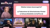 06:54:27Ein schwieriges Lore-Quiz folgt, in dem die Teilnehmer die vier Elementarfürsten von WoW benennen müssen. Der Streamer gibt dabei Hinweise und korrigiert die Teilnehmer, während die Erinnerung an die Aussehens der Fürsten thematisiert wird. Anschließend wird die Gemeinschaft gebeten, abzustimmen, welcher der Sauerkraut-Gildenleiter der 'fähigste' ist, was zu einer interessanten Dynamik zwischen den Teilnehmern und deren Zuschauern führt.