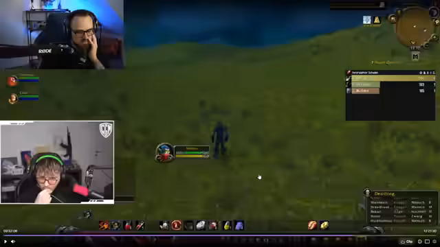 01:36:04Der Stream konzentriert sich auf World of Warcraft Gameplay, insbesondere auf das Kiting von Monstern in Schattenfeste Kloster. Es werden wiederholt Aktionen wie Rennen, Springen und Nova-Zauber erwähnt. Ein zentraler Punkt ist die Kritik an einem sehr ungeschickten Spieler, dessen Fähigkeiten als äußerst schlecht beschrieben werden und der offenbar grundlegende Anweisungen ignoriert. Die emotionale Reaktion auf dieses Verhalten ist extrem stark, was von humorvollen bis zu wütenden Äußerungen reicht.