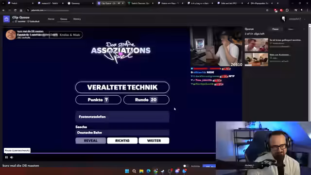 02:30:10Der Streamer tekt zahlreiche persönliche Anekdoten und Kuriositäten aus seiner Vergangenheit. Er berichtet über seine Zeit in Bielefeld und skizziert ein lokales Kuriosum, eine Dame, die sich für Zigaretten entblößt. Nachdem die Clip-Ansicht beendet ist, startet ein Großgiveaway. Bei diesem Aktion werden unter den Followern im Chat 50 Euro Guthaben für verschiedene Plattformen wie Amazon, Battle.net oder Steam verlost. Die Teilnahmebedingungen werden klar kommuniziert: Nur Follower können teilnehmen und das Keyword wird später bekanntgegeben.