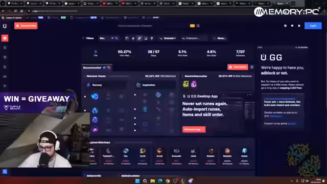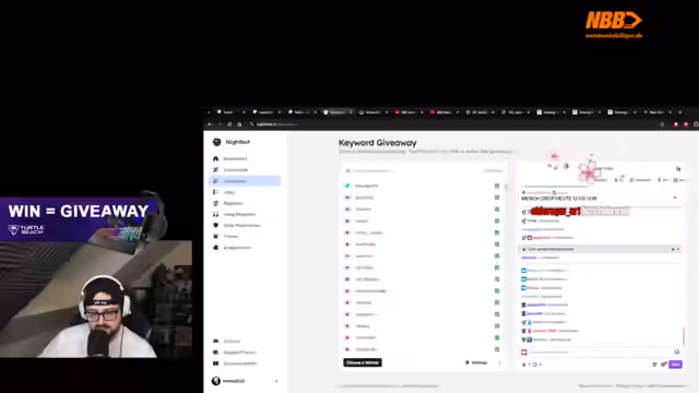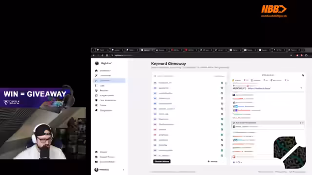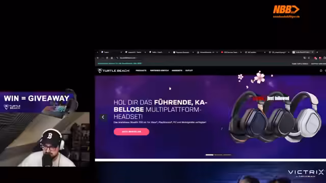 10:55:40Nach einem weiteren Sieg wird ein weiteres Turtle Beach-Giveaway angekündigt. Diesmal wird unter allen Followern im Chat, die den Befehl Ausrufezeichen Turtle Beach eingeben, ein Headset, eine Maus oder eine Tastatur verlost. Die Ziehung soll nach dem nächsten Spiel erfolgen, und der Streamer betont, dass alle Zuschauer, einschließlich Moderatoren und Lurker, teilnahmeberechtigt sind.