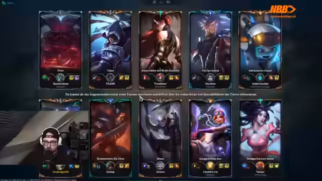 02:27:41Der Stream startet mit intensiver Diskussion über die Heldenwahl (Pick Phase). Nach anfänglicher Verwirrung entscheiden sich für den Top-Lane, wobei Timo als harter, geiler Pick, aber auch Singed als schwierige Option diskutiert wird. Das Team setzt sich letztendlich aus Timo, Nunu, Zerath, Korki und Nautilus zusammen und steht einer komposition mit Nami, Jin, Syndra, Shako und Mordekaiser gegenüber, welche der Streamer als sehr fordernd und kritisch bewertet. Die Stimmung im Chat ist positiv, da viele Follows und Subs eintreffen.
