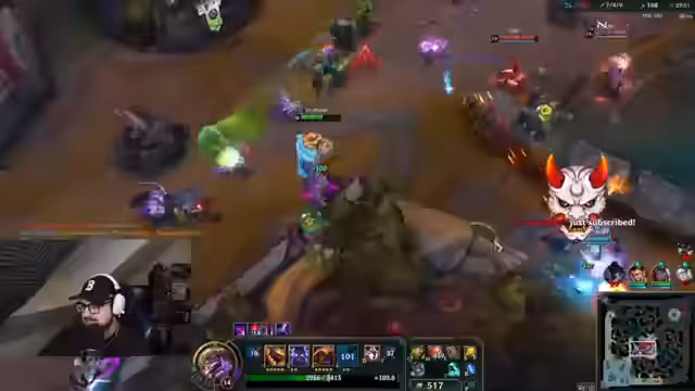 01:01:19Das Spiel verläuft für das Team des Streamers schwierig. Obwohl er in der Top-Lane gegen den Darius bestehen kann, verliert das Team frühzeitig Teamkämpfe, hauptsächlich aufgrund von schlechten Positionierungen und mangelnder Map-Awareness des Teams. Der Gegner, insbesondere ein Warwick im Jungle, wird als sehr stark beschrieben. Nach mehreren Toden und einer schlechten Positionierung des Teams kann das Spiel nicht mehr gedreht werden und endet mit einer Niederlage für das Team des Streamers, das frühzeitig aufgibt.