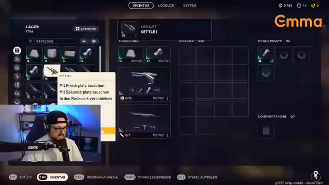 02:48:38Der Streamer erkundet die Spielmechaniken von Arc Raiders, einem Extraction-Shooter. Er erklärt das Loot-System, bei dem man verschiedene Materialien wie Kabel, Legierungen und Waffenteile sammeln kann. Es wird deutlich, dass das Inventarmanagement eine zentrale Rolle spielt und Platzmangel oft ein Problem darstellt. Der Spieler diskutiert Strategien für den effizienten Transport von Gegenständen und die Herstellung von Upgrades, während er gleichzeitig die Komplexität des Spiels anerkennt.