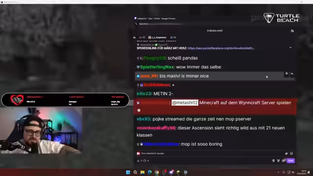 Im Rahmen der Spendenaktion 'März mit Herz' wurde ein Minecraft-Hardcore-Event absolviert. Nachdem ein Teammitglied frühzeitig das Spiel verlassen musste, wurde der weitere Verlauf zur einzigen Überlebensgeschichte. Das Ziel, der Enderdrache, rückte in den Fokus, während die Spendensumme weiter anstieg und technische Rückschläge bewältigt werden mussten.