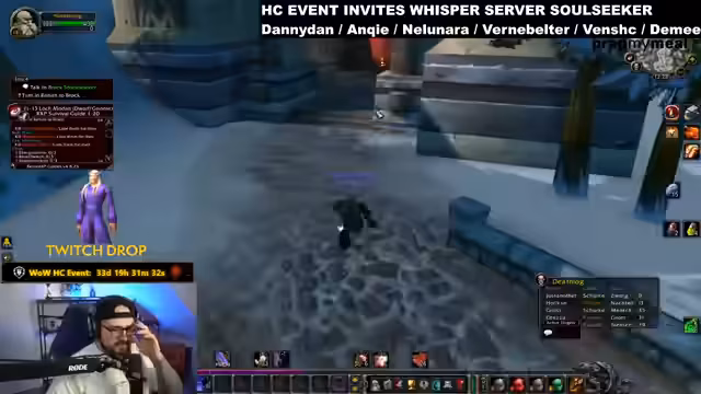 01:33:02Der Streamer kündigt das WoWHC-Event an, das in 33 Tagen und 22 Stunden, am 27. Dezember, stattfinden wird. Er scherzt über seine hohen Zuschauerzahlen und betont, dass er lediglich ein „Sprachrohr“ sei. Er ist kurz davor, Level 13 zu erreichen und äußert sich zu Spenden, indem er lieber einen Follow oder einen Lurk anstelle von Geldspenden bevorzugt. Er bedankt sich bei neuen Followern wie BadDog und René948. Besonders hervor hebt er Snarf221, der in diesem Monat bereits 97 Subs verschenkt hat, davon 20 an diesem Tag, obwohl er selbst kein Abonnent ist. Dies führt zu einer humorvollen Frage nach Snarfs Wohlergehen und einer allgemeinen Wertschätzung für die Großzügigkeit der Community. Er bemerkt, dass er eine Quest nicht annehmen kann, da sie wahrscheinlich Nachtelfen-exklusiv ist, und bedankt sich bei weiteren Followern und Supportern wie Ditch, Johnny Fontaine, Himbeerfeder, Luke, Crispy und Archies Gameplay.