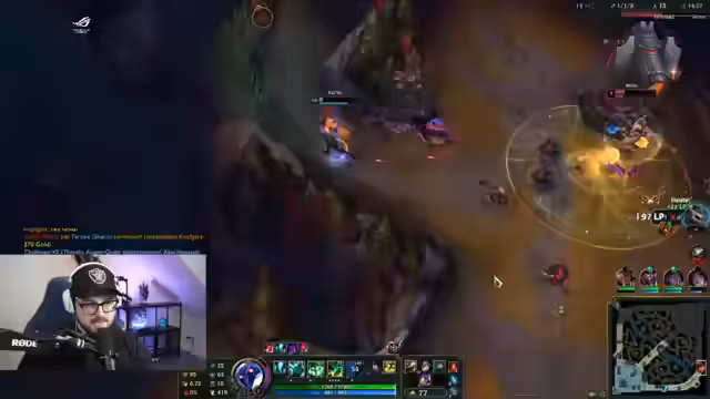 01:08:37Der Streamer absolviert ein intensives League-of-Legends-Spiel mit dem Champion Brand als Support. Es kommt zu hitzigen Auseinandersetzungen im Chat und zwischen den Spielern, was zu kreativen und teilweise unkonventionellen Spielszenen führt. Der Fokus liegt darauf, das Spiel für die Charity-Challenge zu gewinnen, wobei der Streamer immer wieder betont, dass er für die Kinder kämpft und jedes Spiel, egal ob gewonnen oder verloren, als Erfolg werten will.