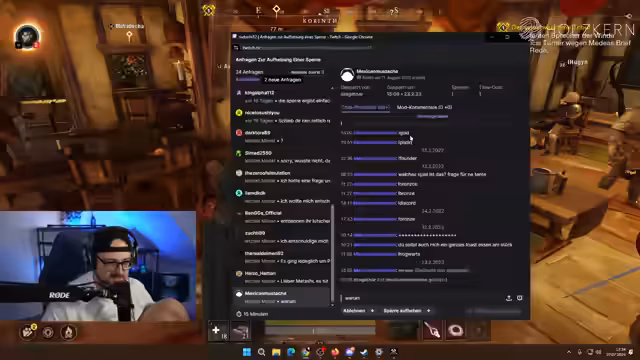 04:25:58Nachdem der Streamer die technische Aufräumarbeit beendet hat, startet er mit der Bearbeitung von über 30 Entbannungsanträgen. Er geht die Anträge einzeln durch, erklärt die Gründe für die Sperren und entscheidet über deren Aufhebung. Die Gründe sind vielfältig und reichen von Geschwätz über provokante Bemerkungen bis hin zu einem.account-kapern durch einen Vater, um seinen Sohn vom Stream abzuhalten. Anschließend führt er die ausgelobten Hardware-Giveaways für seine Follower durch.