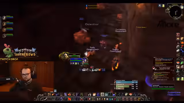 03:28:40Der Stream spielt hauptsächlich in Scholomance. Es kam zu einem sehr schwierigen Kampf gegen den Boss Dunkelmeister Gantlong, bei dem er die Gruppe in einen Cheese-Manöver zwingt, um den Boss zu besiegen. Anschließend werden mehrere Quests und Loot-Management besprochen, die darauf abzielen, wichtige Items wie eine Halskette oder eine Waffe zu erhalten, wobei das Verhältnis zwischen den Spielern Zeus und Gucci als angespannt und gierig beschrieben wird.