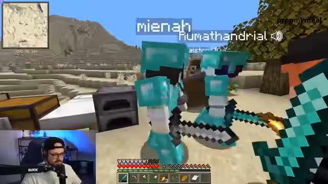 02:49:01Nachdem der Streamer fünf Diamanten gefunden hat, baut er einen kleinen Aufenthaltsraum, um eine Werkbank zu platzieren. Dort stellt er eine Diamantspitzhacke und ein Diamantschwert her, was einen enormen Fortschritt darstellt. Diese neuen Werkzeuge ermöglichen ein wesentlich schnelleres und effizienteres Abbauen. Die Freude über die Diamantfunde und die neuen Werkzeuge ist groß, und der Streamer ist motiviert, weitere Diamanten zu finden und sich den Herausforderungen des Spiels zu stellen.